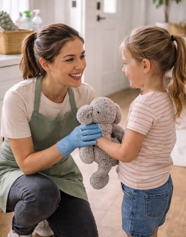 Instead of pushing them away, we meet that curiosity with kindness. If a child shows interest, we encourage safe, age-appropriate involvement. Turning everyday cleaning into a positive experience helps build responsibility, confidence, and life skills.